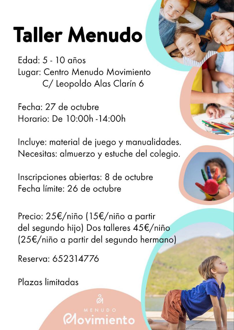 En las misma semana tenemos a los peque en casa, y desde Menudo Movimiento queremos ayudarte a que tus hijos e hijas pasen una mañana diferente, divertida, llena de movimiento, creatividad terrorífica y mucha diversión. Si te apetece que vengan a este taller, reserva plaza en el siguiente enlace. Puedes reservar para los dos días con descuento.